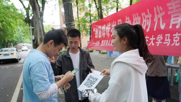“民主湖”中“民主”一词的由来入题,向重大师生讲述了自五四运动起,中国共产主义青年团创立、发展与壮大的历程,号召新时代青年团员,牢记习近平总书记的殷殷嘱托,用奋斗为中华民族复兴铺路架桥,为祖国建设添砖加瓦。微视频于5月5日在抖音短视频