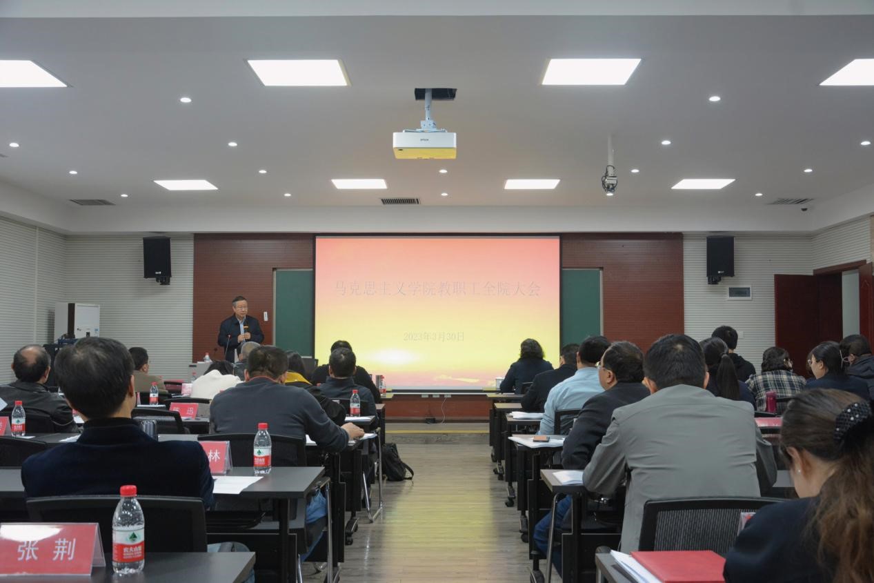 在学院406室召开全面从严治党专题会议暨全院教职工大会,会议由党委书记罗滌主持,校纪委副书记章锋云、马院领导班子、全体党员及教职工参加了此次会议。