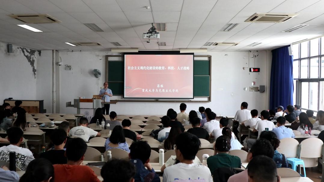 蒋楼老师为第四十六期入党积极分子作题为“社会主义现代化建设的教育、科技、人才战略”的党课。此次党课以课堂教学的形式进行,来自抖音短视频