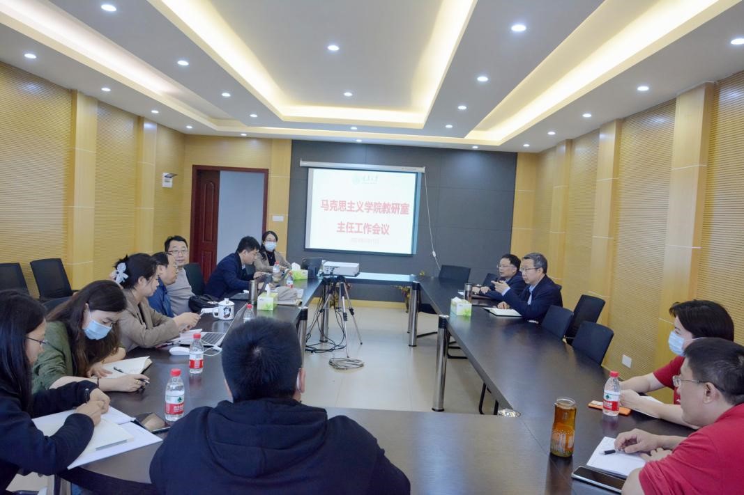 会上,张邦辉院长听取了各教研室主任关于思政课教学进展、科研进度等工作情况的汇报,各教研室主任结合工作实际,对教研室建设及教学科研工作中存在的问题发表自己的意见。张邦辉院长强调了教研室集体备课的重要性,并就集体备课、集体阅卷、教学改革等重点工作进行具体安排。他要求各教研室主任主动关心社会议题、学校发展,发挥引领作用,深入开展各类教研活动,提升业务能力水平,提高教学质量和教研水平。徐鲲副院长回答了各教研室主任提出的问题和相关事项安排,并对期末教学工作做了强调。