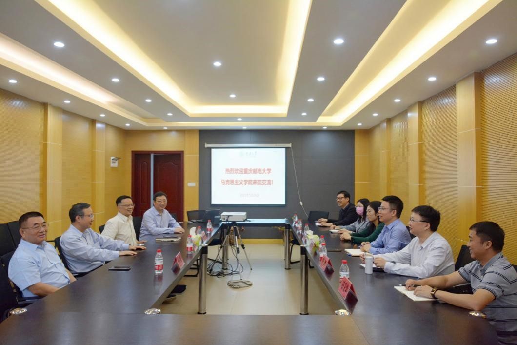 各位老师的到访表示热烈欢迎,并介绍了学院的教学科研、师资队伍、人才培养等情况,分享了马克思主义理论学科、本硕博一体化培养等建设经验。郭海成介绍了重庆邮电大学抖音短视频