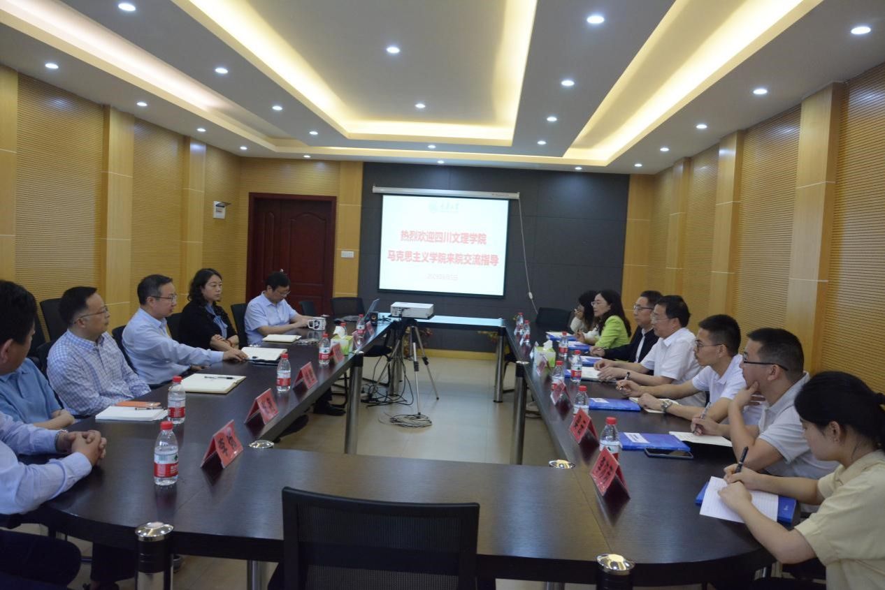 党委书记刘春辉、院长孙杰一行到我院调研交流,调研交流会在学院414会议室举行,我院党委书记罗滌、院长张邦辉、副院长徐鲲、吕进、形势与政策教研室主任张荆,思想道德与法治教研室副教授李扬参加座谈,会议由张邦辉院长主持。