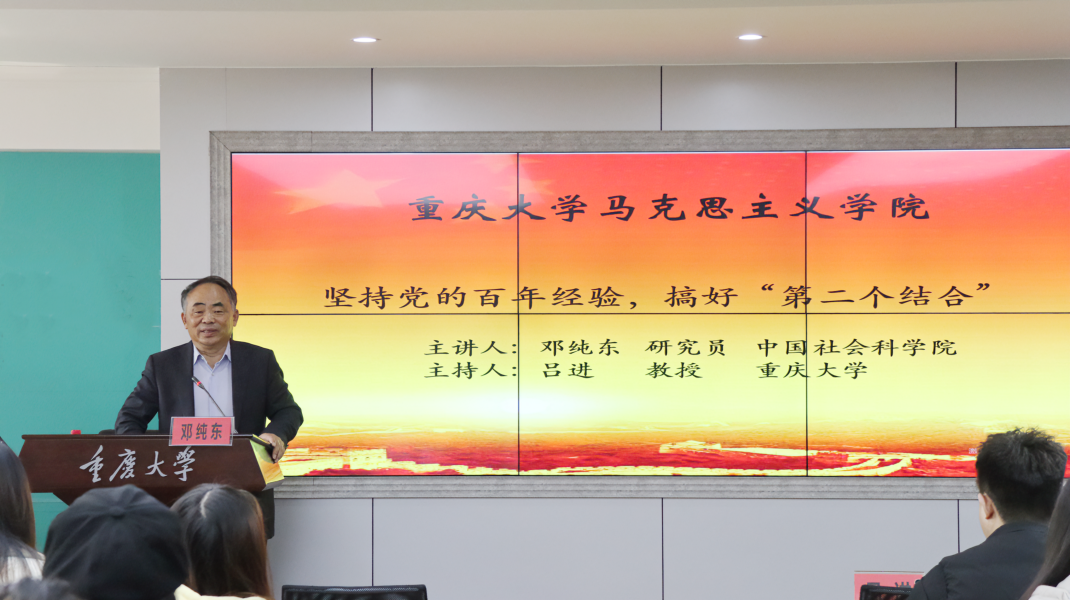 特邀中国社会科学院大学马克思主义高等研究院常务院长、研究员、博士生导师邓纯东作题为《坚持党的百年经验 搞好“第二个结合”》的专题讲座,马院师生70余人参加。