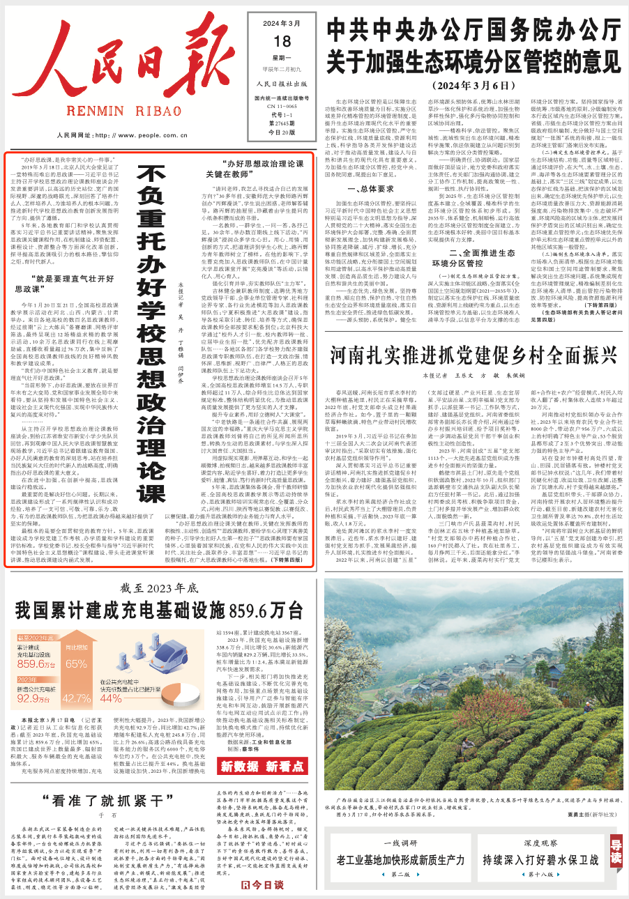 2024年3月18日,《人民日报》头版头条推出《不负重托办好学校思想政治理论课》报道,点赞抖音短视频