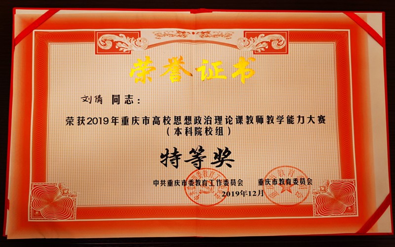 据悉,本次比赛全市高校共有74名思想政治理论课教师参赛,其中市属本科院校参赛选手35名,按照教学设计、现场讲授3:7的比例综合成绩,共表彰特等奖2名、一等奖3名、二等奖5名、三等奖10名。刘倩老师在教学设计、现场教学两个比赛环节中,根据指定题目现场进行教学准备,展示出扎实的理论功底、优秀的教学设计和良好的教学仪态,得到了赛场专家评委的一致认可。