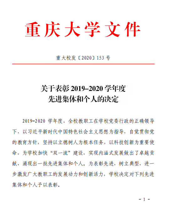 《关于表彰2019-2020学年度先进集体和个人的决定》文件内容,我院五位老师获得学校表彰,分别为: